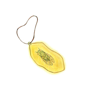 W środku zastygła cykada.